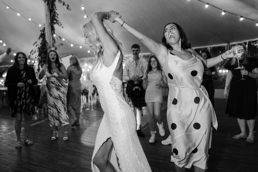 It was soon time for cutting the wedding cake (and navigating the knife so as to avoid the sparklers!) followed by Gemma and Julian’s first dance as a married couple. The dance floor filled quickly and it was great fun to try to capture some of the energy and fun on display. The DJ was joined by his returning saxophonist brother ‘The Sax Walker’ at this stage playing a number of floor-fillers. The dancing went on until late in the evening, with many guests chosing to take well-earned ‘hydration’ breaks from the dance floor at the very popular vodka-ice sculpture.