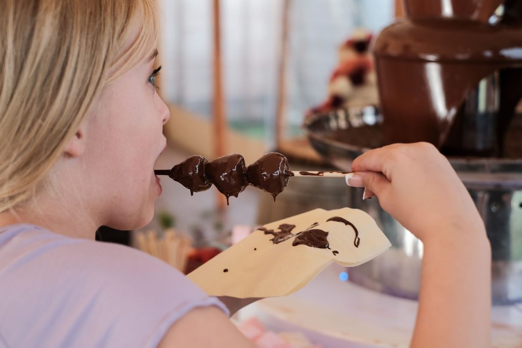 The drinks’ reception was a vibrant celebration as lively jazz saxophone music accompanied the clinking of glasses where guests mingled and children let off some steam. Friends and family toasted the happy couple and some of the kids began to make inroads on an appetising-looking chocolate fountain.