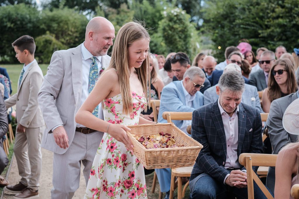 The wedding day got going with a ceremony under the beautiful oak pergoda accompanied by a string trio and surrounded by Gemma and Julian’s closest family and friends. The couple exchanged their own personal marriage vows before walking down the aisle and being hit by an absolute mountain of confetti